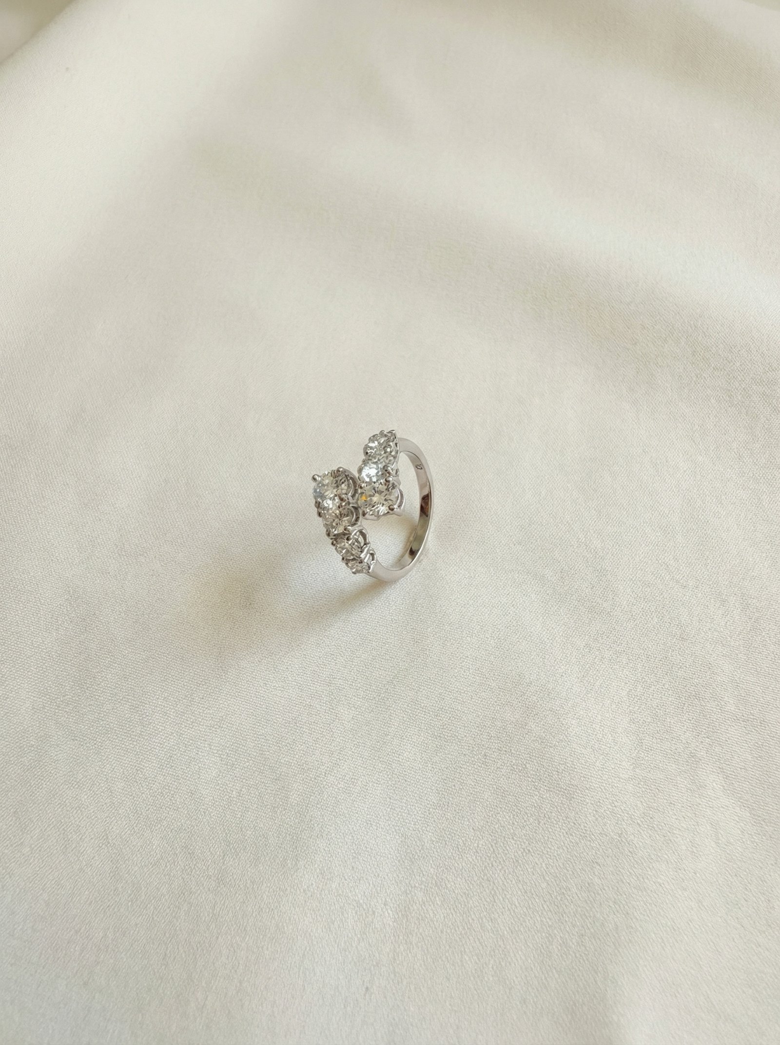 טבעת בעיצוב מפוצל בשיבוץ יהלומי אובל